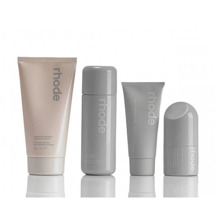 Rhode's complete collection for Hailey’s signature dewy, glazed skin. All five products for nourished face & lips in our rhode grey box. Original value: $106.