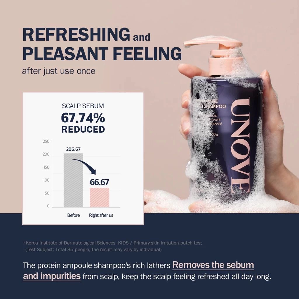 Rich lathers from the protein ampoule shampoo removes the sebum and impurities from scalp, keep the scalp feeling refreshed all day long.